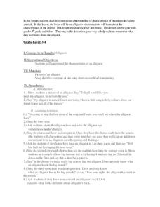Students investigate the characteristics of alligators. In this animal science lesson, students sing a song to identify the parts of an alligator. Students draw a picture of their own alligator.
