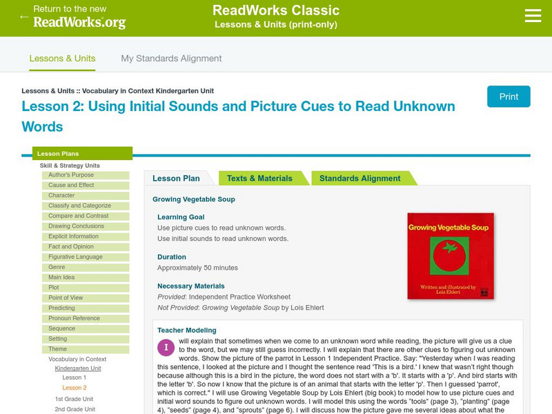 Read Works: Vocabulary in Context Kindergarten Unit: Using Sound and Picture Cues