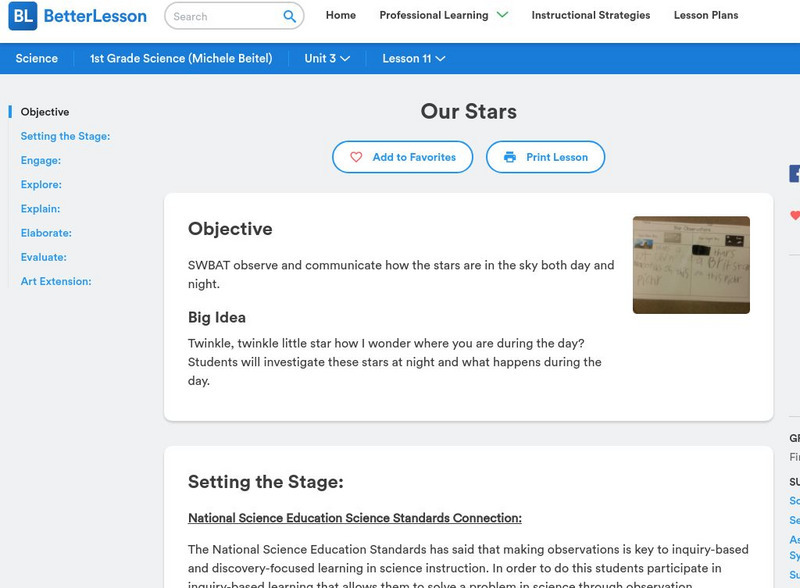 In this lesson plan, students will observe and communicate how the stars are in the sky both day and night. The extremely detailed lesson plan includes photos and videos of the lesson plan in actions, examples of student's work,...
