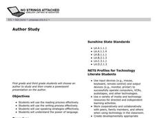 Learners work collaboratively to create PowerPoint presentations on an author of their choice. This activity is written for a first and third grade joint project with students pairing up across grade levels.