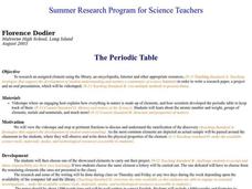 Students research an assigned element using the library, an encyclopedia, the Internet and other appropriate resources in order to write a research paper, a project, and an oral presentation.