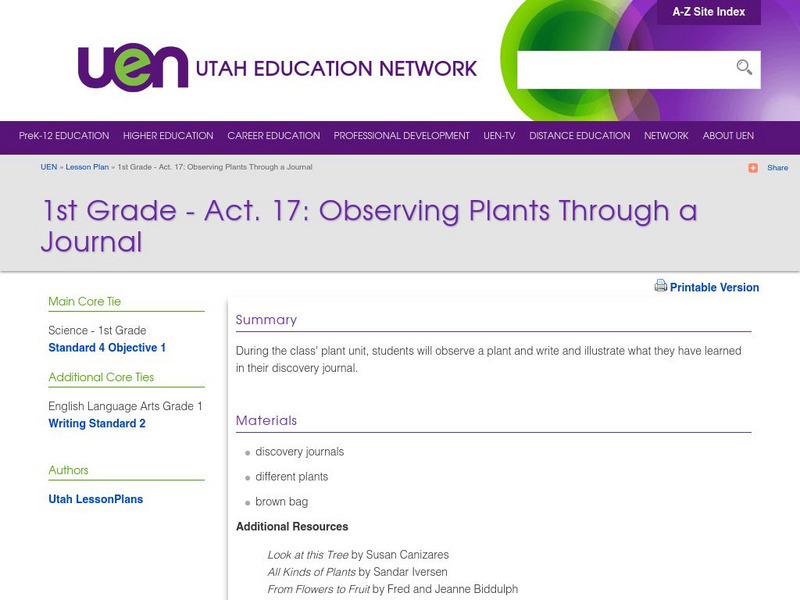 Uen: 1st Grade Act. 17: Observing Plants Through a Journal