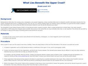 Students discover if information in an article is accurate and current. In this science lesson, students read the story carefully and decide on what the subject of the article is. Students search the Internet to see more information...