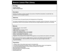 Eighth graders identify the living and nonliving components of an ecosystem. In this ecology instructional activity, 8th graders explain the role each organism plays. They participate in class discussion and answer a quiz at the end...