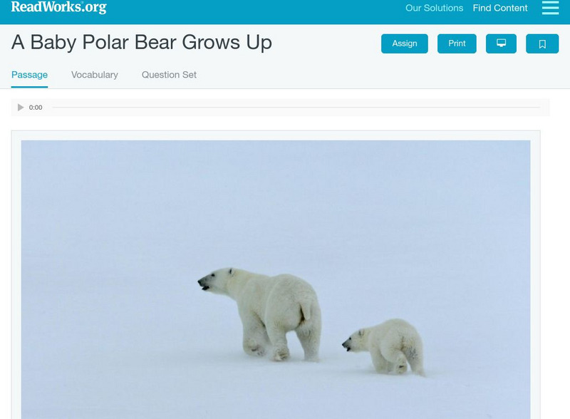 [Free Registration/Login Required] An informational text about a baby polar bear as he grows and learns to be on his own. A question sheet is available to help students build skills in reading comprehension.