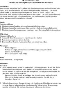 Young scholars engage in a lesson that differentiates between right and wrong types of observations. In order to conduct the experiment they are provided with leaves and nameless objects with different designs. The two are compared and...
