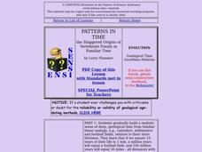 Learners build a realistic sense of geological time, seek clues of transition fossils and find them. For this investigative lesson students complete several activities and worksheets on fossils.