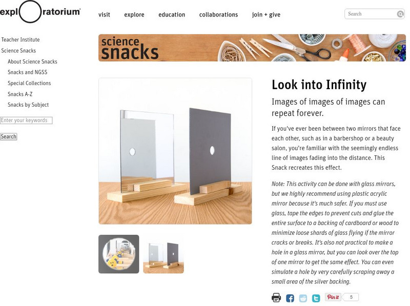 In this activity students will create images of images of images that can repeat forever. Students will recreate this effect by setting up two acrylic plastic mirrors.
