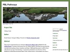 Predict the year that college costs will double in your state using linear modeling. The first part of this two-part project based learning activity asks young mathematicians to use data from the College Board. They graph the data,...