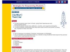 Students study conative and cognitive strengths through characters in literature. In this conative and cognitive strength lesson, students read about a favorite character or historical person. They make a chart of the difficulties the...