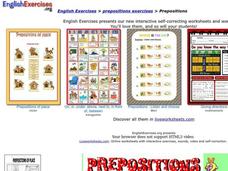 For this preposition worksheet, 6th graders study a list of given prepositions. Students then respond to 45 fill in the blank questions supplying the correct preposition for each.