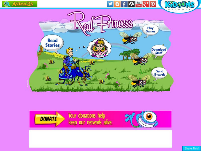 An animated version of Hans Christian Andersen's fairy tale, the "Real Princess" (or "The Princess and the Pea"). Website also contains coloring pages and games for children. Available in multiple languages.