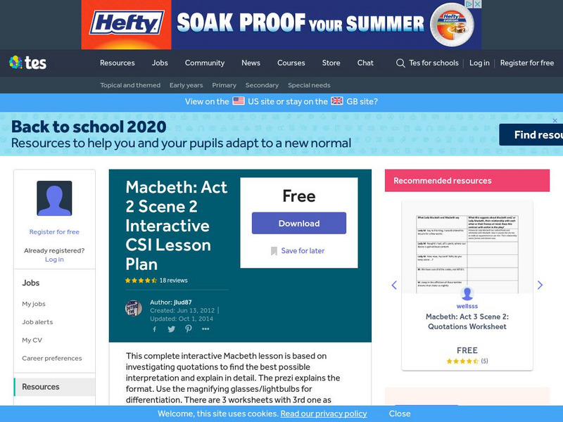 Tes: Macbeth: Act 2 Scene 2: Interactive Csi Lesson Plan