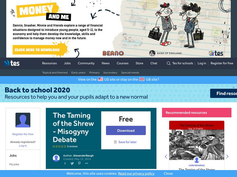 [Free Registration/Login Required] This slide show lesson and worksheet focus on whether Shakespeare's The Taming of the Shrew is a misogynistic play, displays hatred or dislike of women. Students must take a stand, and write an essay...