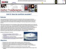 Students identify types of conflict and various responses to anger. In this character education lesson plan, the teacher introduces definitions of conflict and anger responses. Students find examples of types of conflict in newspapers...