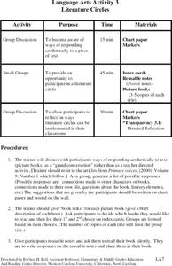 Students respond aesthetically to a piece of text. They give book talks about a picture book their small group read and rate it. Each student has a different job in the literature cirlce during the discussions. Finally, the students...