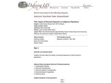 Students study the impact of westward expansion on Native American populations. They create a diorama of a Native American scene, write imaginary letters as a pioneer child reflecting on his/her experiences, and create story sticks that...