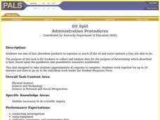Students use one of four absorbent products to separate as much of the oil and water mixture they are able to do. The purpose of this task is for students to collect and analyze data for the purpose of determining which absorbent is...
