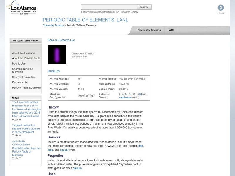 A summary of basic data, along with information on the history, sources, uses and properties of indium.