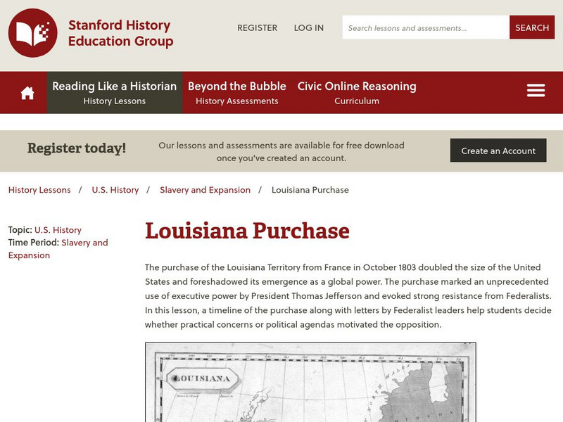[Free Registration/Login Required] Students read primary sources to solve a problem surrounding a historical question. In this document-based inquiry lesson, a timeline of the Louisiana Purchase along with letters by Federalist leaders...