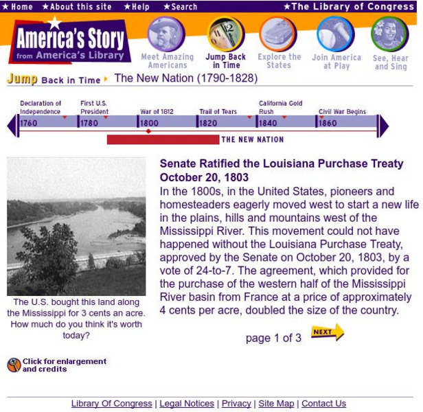 This Library of Congress timeline series discusses the Louisiana Purchase.