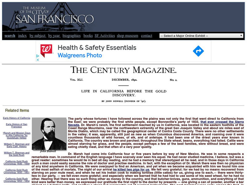 From the "Century" magazine, an article from 1890 by James Bidwell who came to California in 1841.