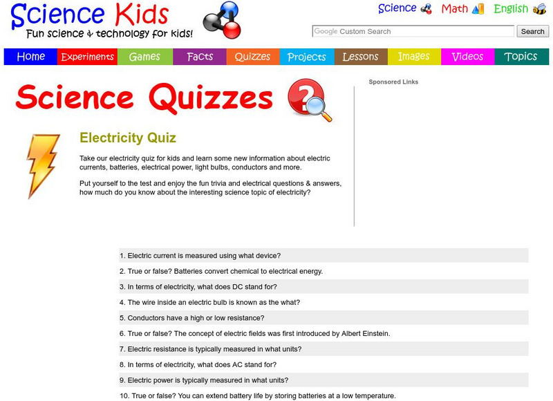 Physics 4 Kids: Electricity and Magnetism Quiz