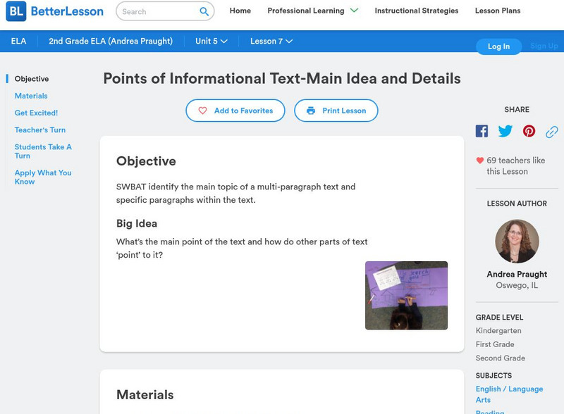 Better Lesson: Points of Informational Text Main Idea and Details