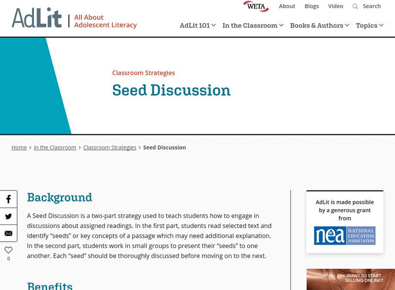 Ad lit.org: Classroom Strategies: Seed Discussion
