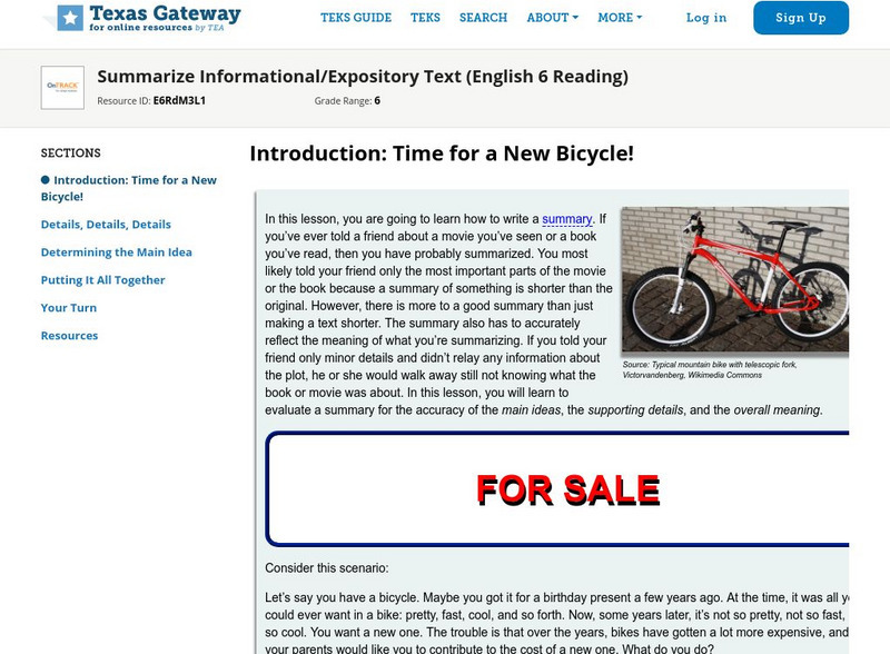 Texas Gateway: Summarize Informational/expository Text (English 6 Reading)