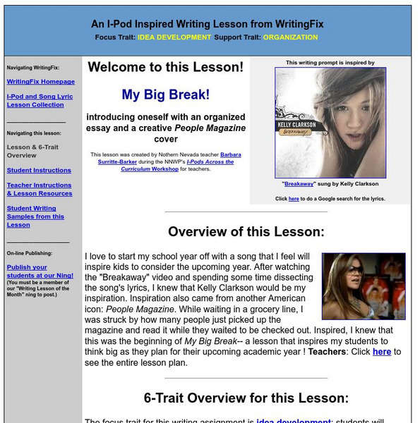 The focus trait for this writing lesson plan is idea development; students will consider the idea of becoming famous and making the cover of an infamous magazine, People. Moving from the mundane to inspirational, attention to detail and...