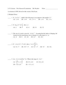 In this algebra worksheet, 12th graders assess their knowledge on logs, functions and derivatives. There are 40 questions on this exam.