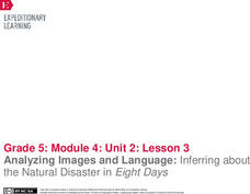 Pictures often reveal different meanings. Scholars analyze the images in Eight Days and discuss how they add meaning to the text. Readers answers questions about how specific colors are used to create different emotions. Learners then...