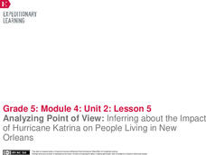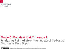 What, where, how? Readers hone their analysis skills as they determine the narrator's point of view in Eight Days. They complete a literary analysis chart and essay to describe what and where events take place. Individuals then discuss...