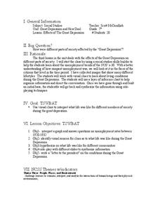 Seventh graders discuss the unemployment trends of the 1920s-1930's. They look at it faces of the citizens that lived in the time period. Students work with visual clues to investigate about the living conditions during the Great...