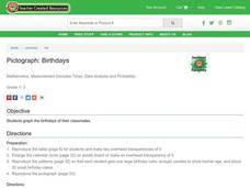Students use data about their birthdays to create graphs. In this collecting and communicating information instructional activity, students make a class list of their birthdays. Students use the information to make a bar graph showing...