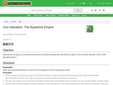 Students study idol worship in the Byzantine Empire and the separation it cause between the Roman Catholic and Orthodox churches. In this Byzantine Empire lesson, students study pictograph transparencies and take a pop quiz over them....