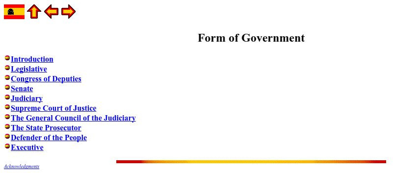 Have a question about the organization of the Spanish government? This resource offers several selections from which you can choose to learn more about a specific branch of Spanish government or the roles of its many leaders.