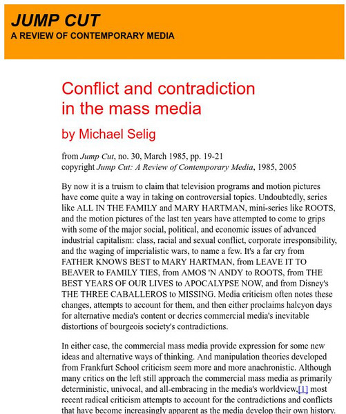 Jump Cut: Conflict and Contradiction in the Mass Media