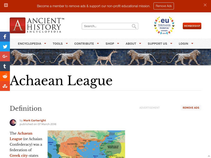 Illustrated encyclopedia entry on the Achaean League, a federation of Greek city-states during the 3rd and 2nd centuries BCE. Site includes timeline, maps, photos and bibliography.