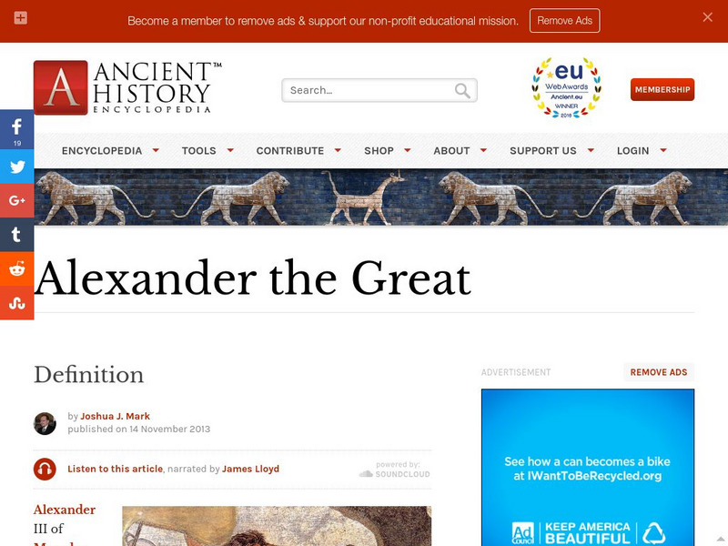 Biographical material on the life and times of Alexander the Great informs with text, photos and map, timeline, video and links to related content.