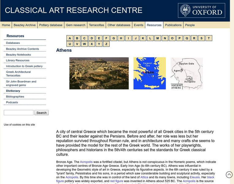 Access to the pottery database and an introduction to Greek pottery. Techniques and styles including shapes and inscriptions are explained in detailed accompanied by photos. Search by a painter and/or potter and view their work, or use...