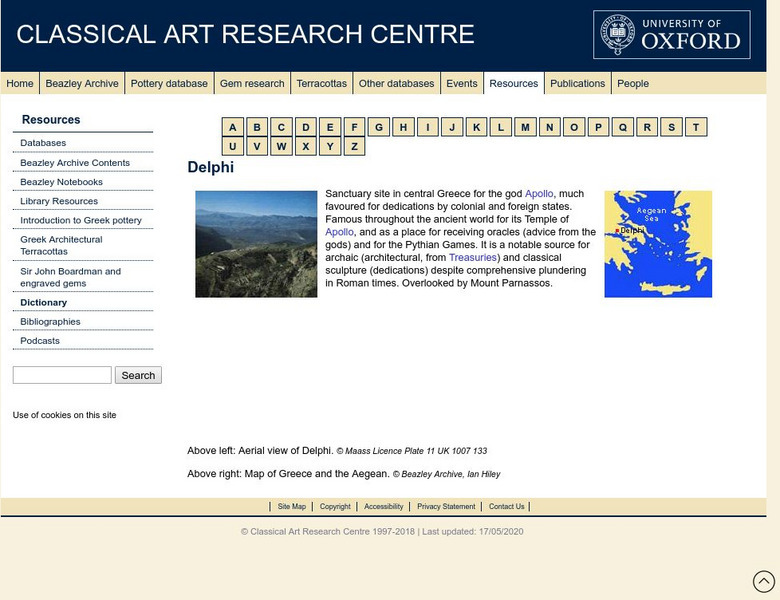 Illustrated dictionary entry on Delphi, Greece. Describes the significance of this area to the Greek gods, famous architecture, classical sculpture, and provides a map of Delphi's location.