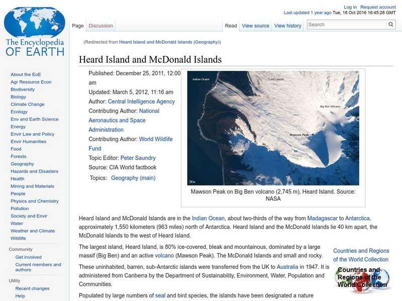 Encyclopedia of Earth: Heard Island and Mc Donald Islands (Australia)