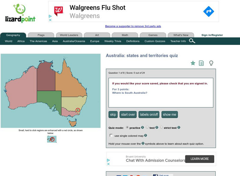 Use this site to visit the land Down Under and learn about the country of Australia. Explore art, history, animals, flags, explorers, folk music, dinosaurs, map, geography, story time and more. Includes an interactive quiz.