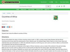 Students investigate the different countries of Africa. In this African geography lesson, students choose an African country to investigate and construct the country's flag. Students use a map of Africa to color in their country.