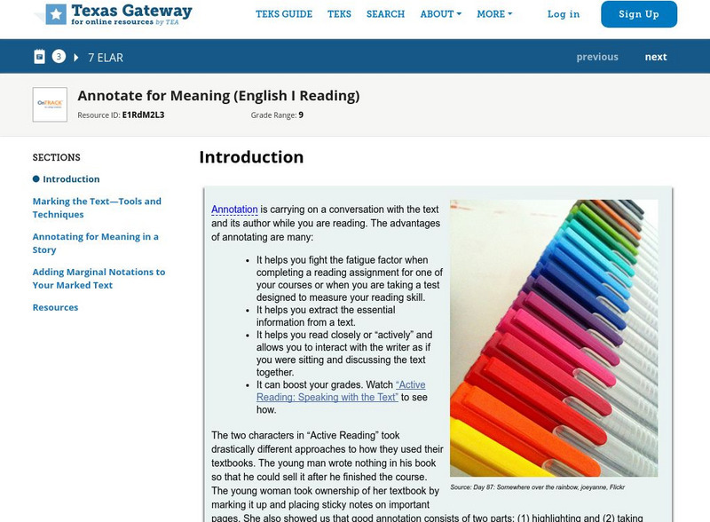 Texas Gateway: Annotate for Meaning (English I Reading)