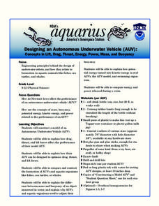 Engineer an autonomous underwater vehicle (AUV) to study concepts of physics. Using household materials, collaborative groups design and build an AUV and then test Newton's Laws of Motion as they apply them in underwater environments...