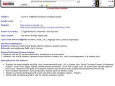 Learners discuss careers related to aquatic or marine science. They write a report called "A Day in the Life of a (blank)." After reports are completed, if possible a person working in the field of aquatic or marine science is invited to...