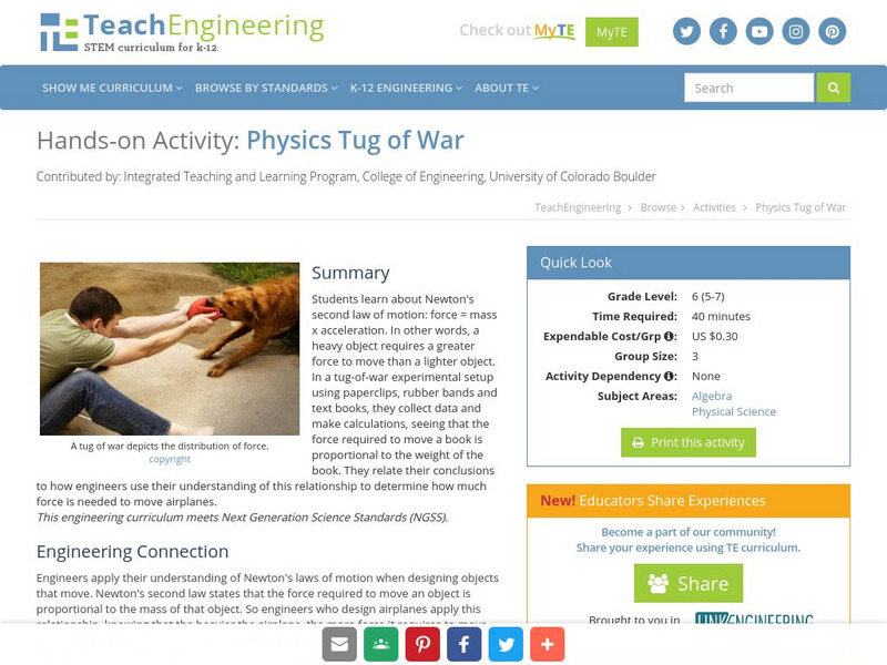 In this activity, students will learn about Newton's 2nd Law of Motion. They will learn that the force required to move a book is proportional to the weight of the book. Engineers use this relationship to determine how much force they...